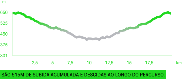 Logo no início, o trajeto desce até o ponto mais bonito da rota, convidando os corredores a admirar a vista erecuperar o fôlego para o retorno